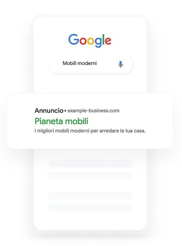 Con Google Ads, raggiungi esattamente chi cerca i tuoi prodotti o servizi,